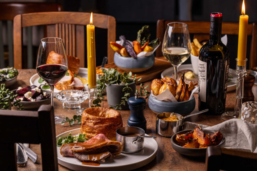 All served with roast potatoes, seasonal greens, roasted roots,Yorkshire pudding, beef dripping gravy
